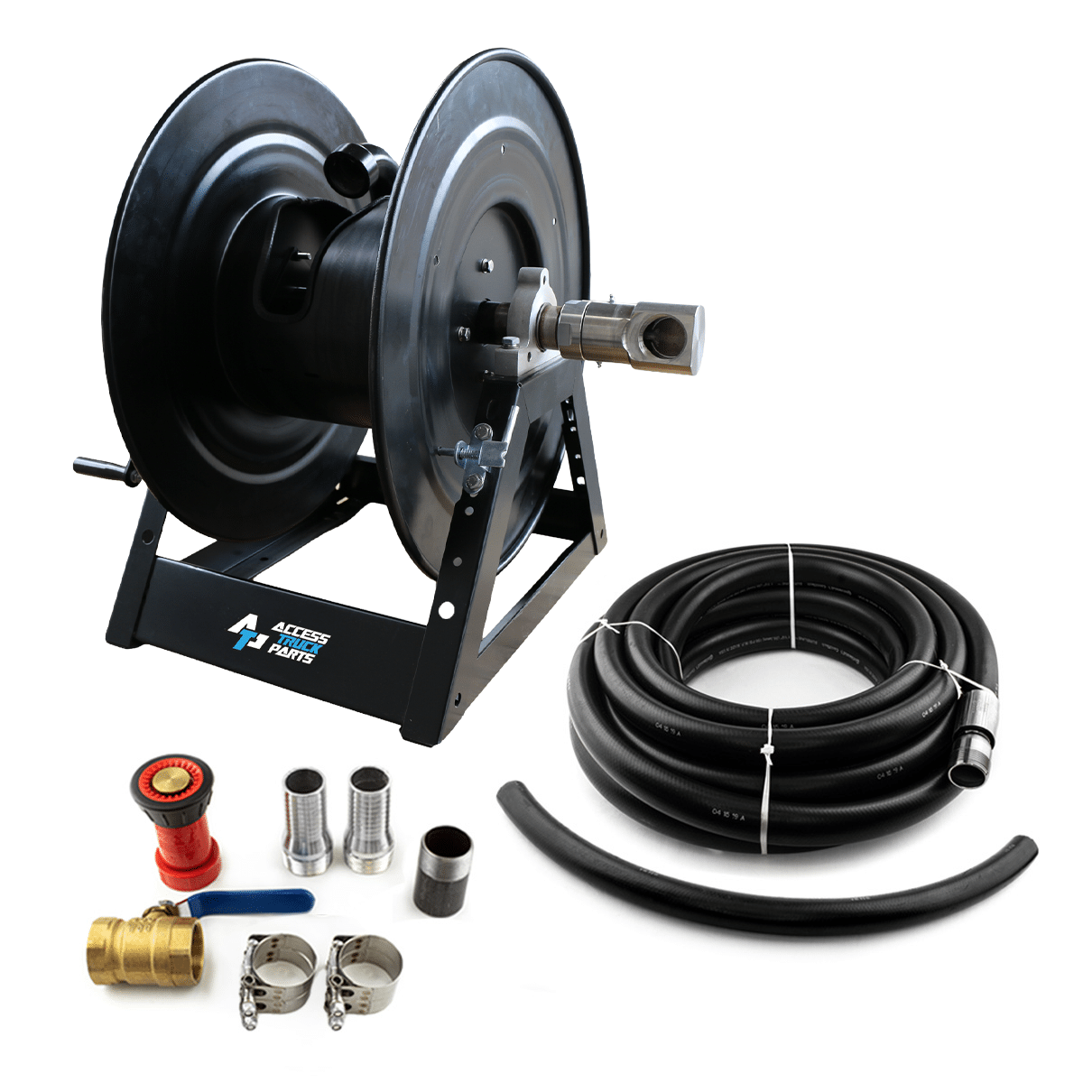 A complete, leak-free hose reel kit built for water trucks and fleet service. The Access Truck Parts 1.5″ Manual Rewind Hose Reel Kit includes everything you need: reel, hose, fittings, and valve. This kit is engineered for maximum flow, durability, and clean operation in demanding environments.